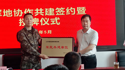 在共建协议签约暨授牌仪式上,武警河津中队领导强调,此次共建将有利于部队法治化建设,进一步提升官兵的法治观念和法律意识。聪锐律所负责人表示,将充分发挥律所的专业优势,积极开展法律服务和普法宣传,为官兵提供更专业的法律支持和保障,切实维护军人军属合法权益。